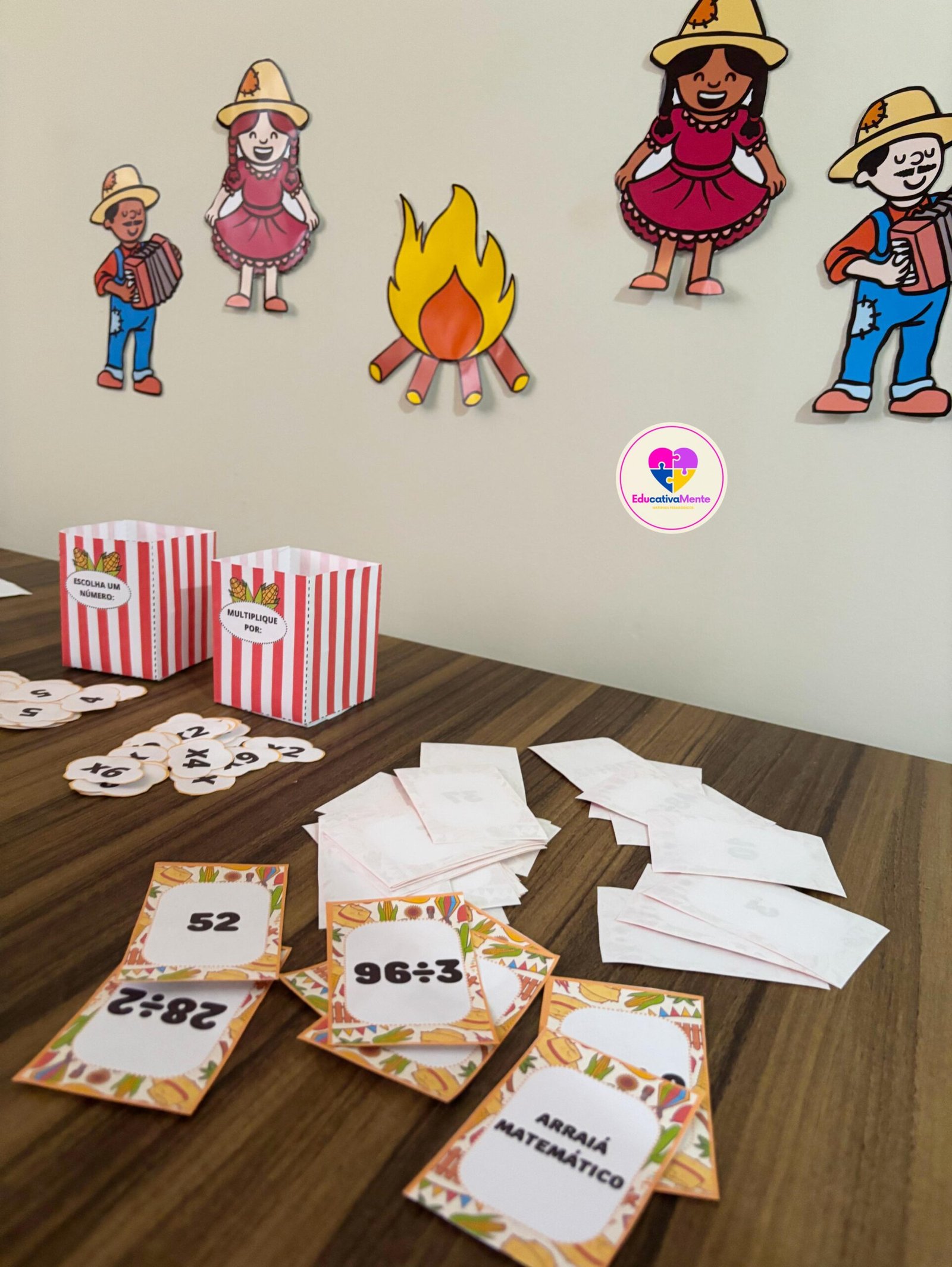 👉 jogo da memória com tema junino para trabalhar divisão (40 fichas com 20 operações)
