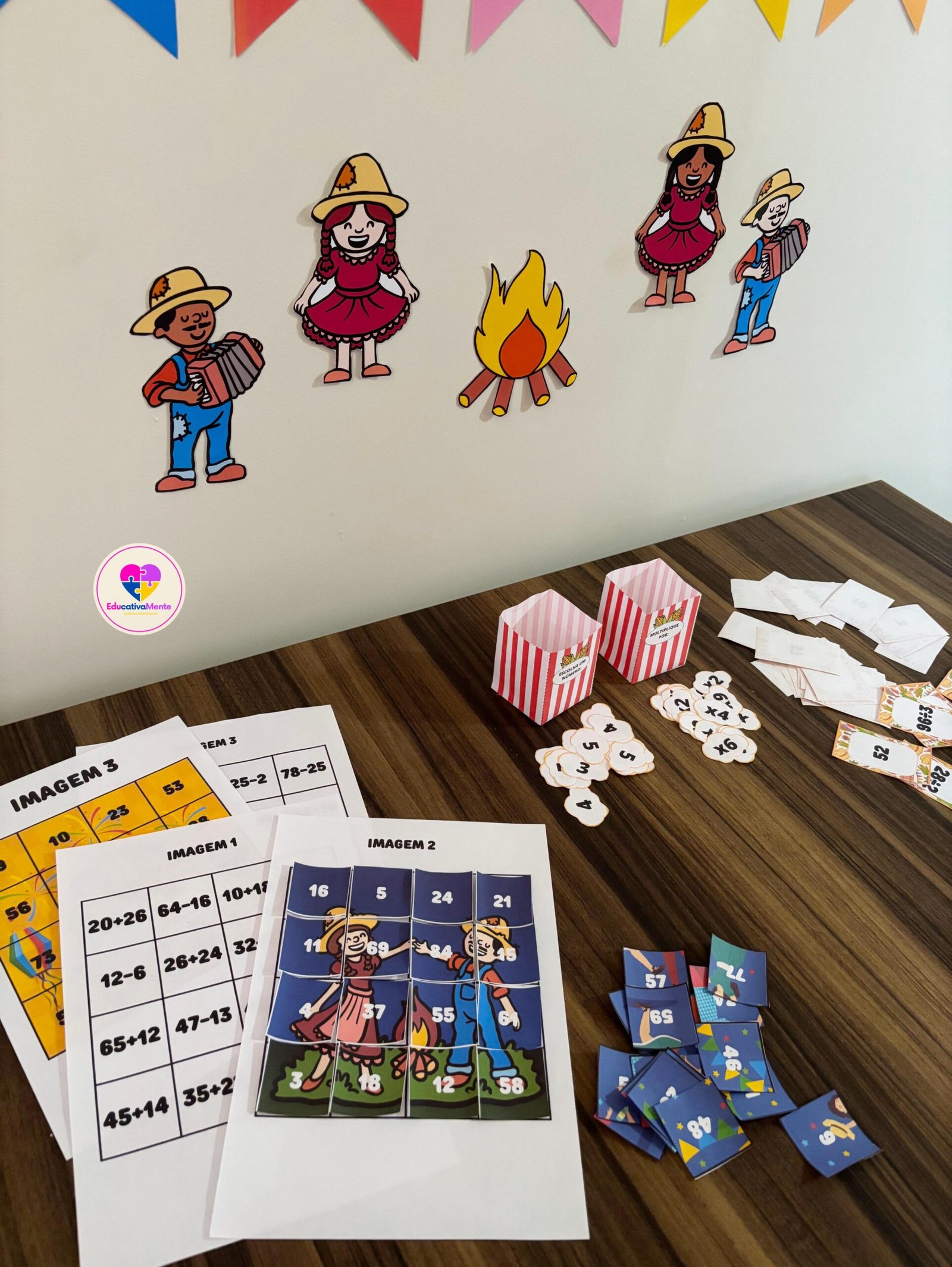 👉 Quebra-cabeça com tema junino com operações de adição e subtração