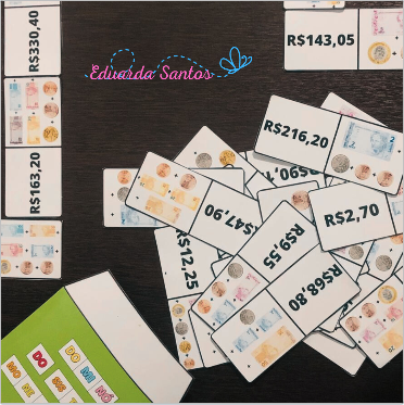 • ▶️ 28 peças de dominó com representações do sistema monetário