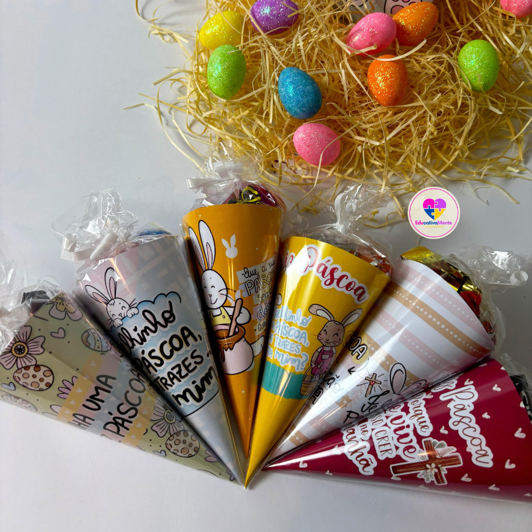 🔥 Não perca tempo! Seja para presentear, vender ou enfeitar sua Páscoa, esses cones vão fazer sucesso!
