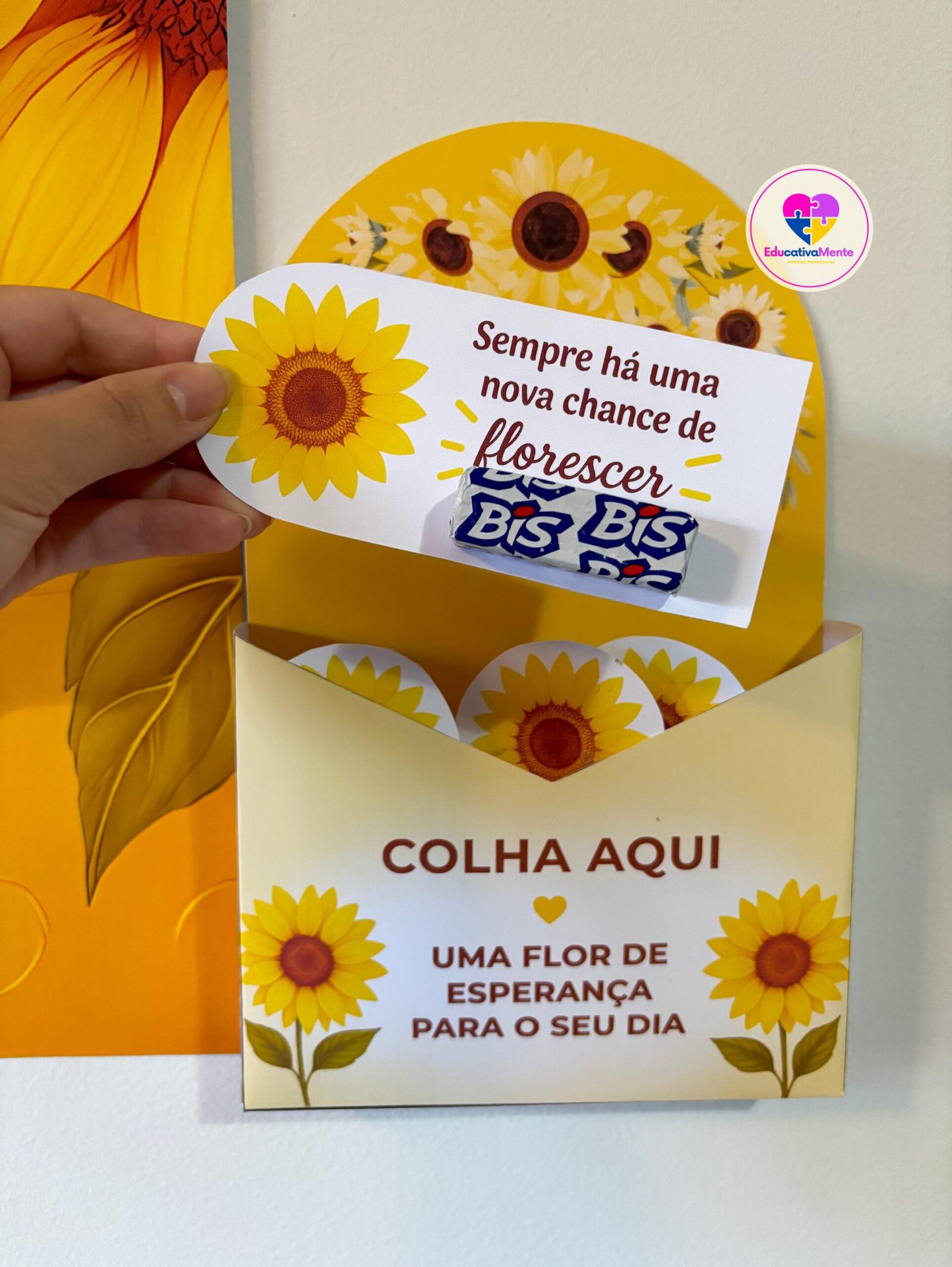 Kit Setembro Amarelo em PDF com painel de girassol, folder, lembrancinhas e moldes prontos para imprimir, ideal para ações que valorizam a vida e inspiram empatia.